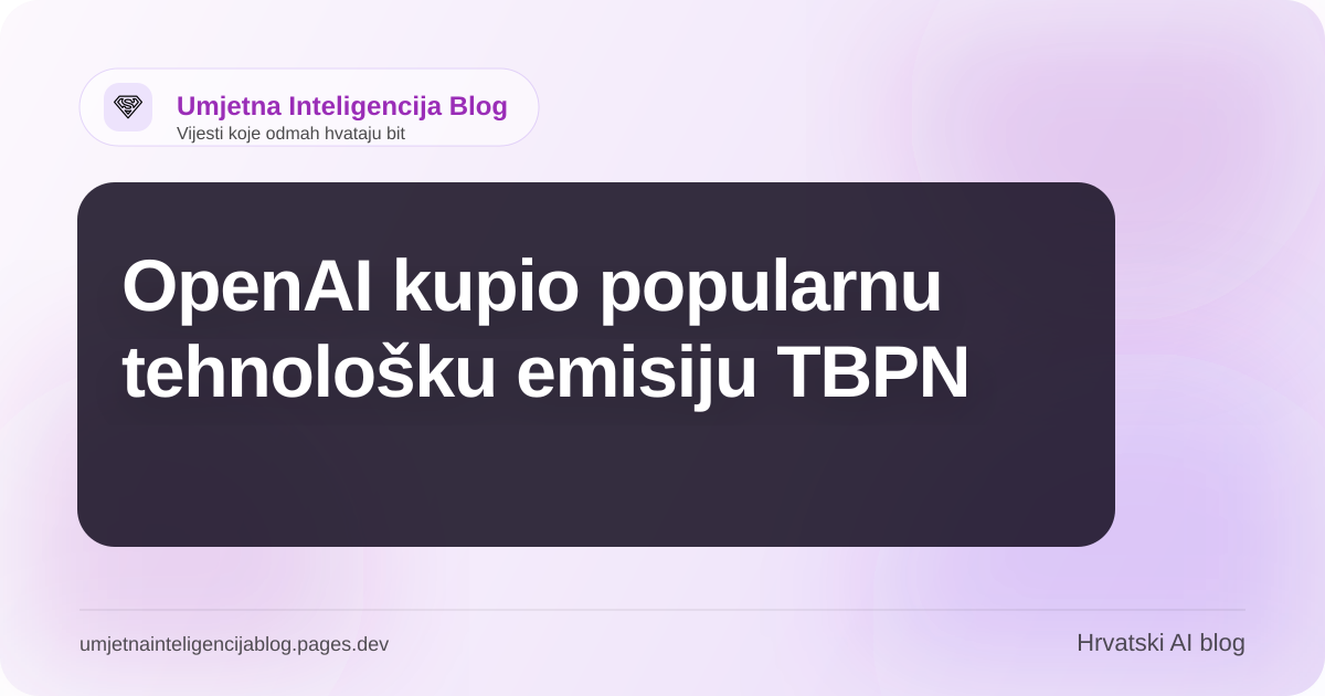 OpenAI je objavio da je kupio TBPN, online poslovnu emisiju koja je izuzetno popularna među elitom Silicijske doline. Ovaj potez dolazi u trenutku kada se OpenAI bori s nizom problema vezanih uz svoj javni imidž, koji je posljednjih mjeseci značajno narušen.